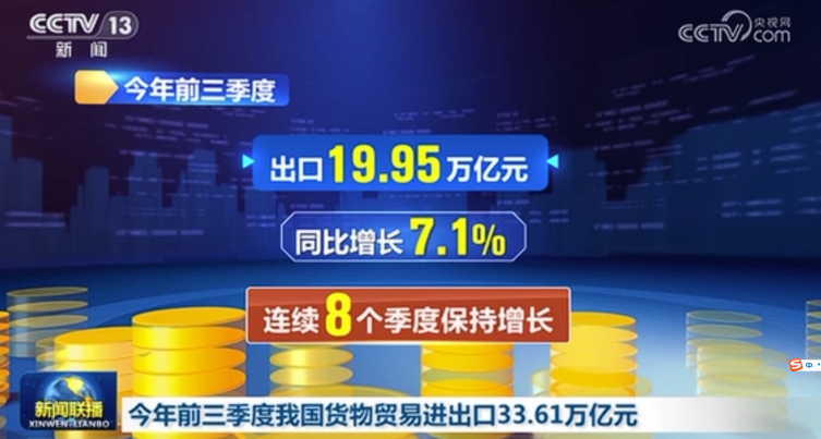 近日,海关总署发布的最新数据显示,前三季度我国货物贸易进出口总值33.61万亿元,再创新高!其中,三季度增长6%,连续8个季度保持增长。更引人注目的是,对共建“一带一路”国家进出口增长6.2%,多元共进的国际市场格局正在形成。