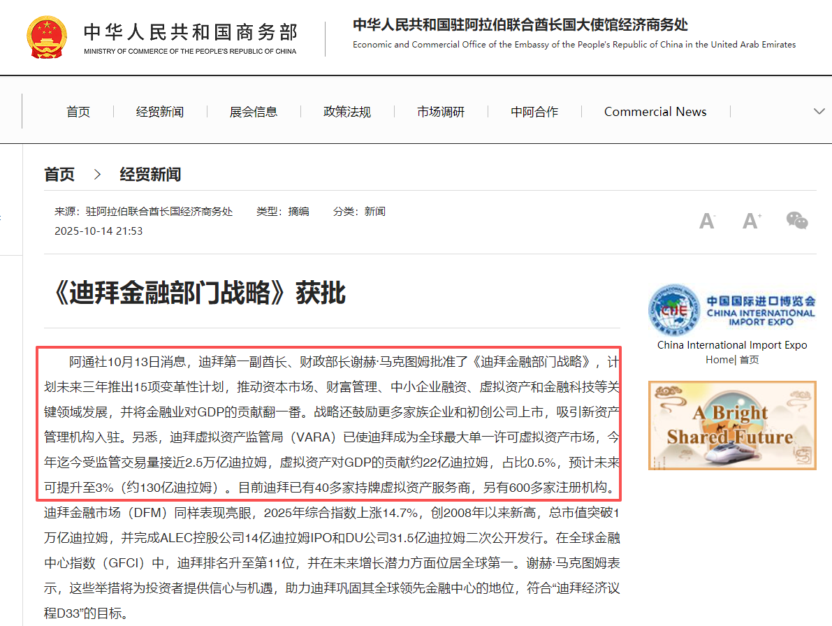 此外迪拜的自由贸易区(如杰贝阿里自贸区、迪拜国际金融中心)对外国企业实行100%外资控股、无外汇管制、零税率等优惠政策。与此同时,阿联酋推出了《数字经济战略》,目标在十年内将数字经济占比从9.7%提升至19.4%。凭借其高度开放的市场环境,成为中东地区的商业中心。