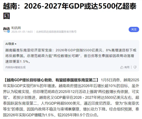 更值得关注的是,越南政府已为2026年设定不低于10%的增长目标——这不是保守预期,而是明确的进攻型发展策略,展现了其强烈的增长雄心和经济韧性。