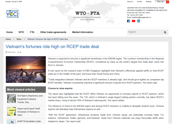 图:RCEP于2022年1月1日起对越南正式生效