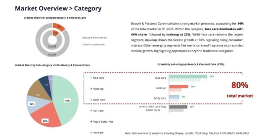 肤色、妆容、功效需求无缝贴合——同为东亚人种,中国消费者和越南消费者在肤色、肤质(如易出油、长痘)、美白抗老等核心诉求上高度一致,“安全、天然”成为核心关键词,面部清洁、身体护理、防晒及基础彩妆需求稳定释放。
