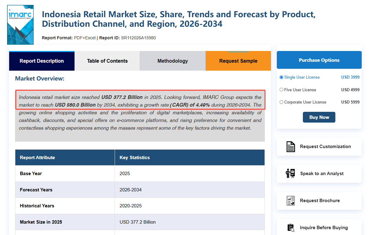 ▲印度尼西亚零售市场规模在2025年达到3772亿美元