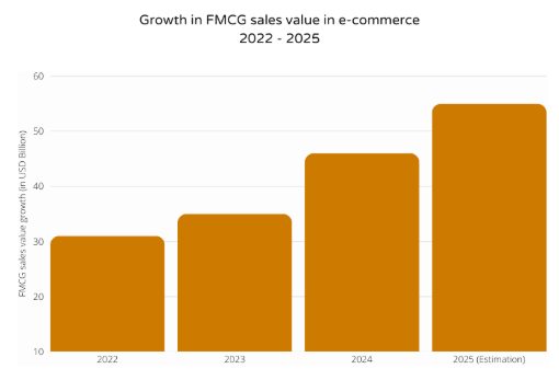 ▲快速消费品在电商上的销售在2022-2025年间保持稳步增长