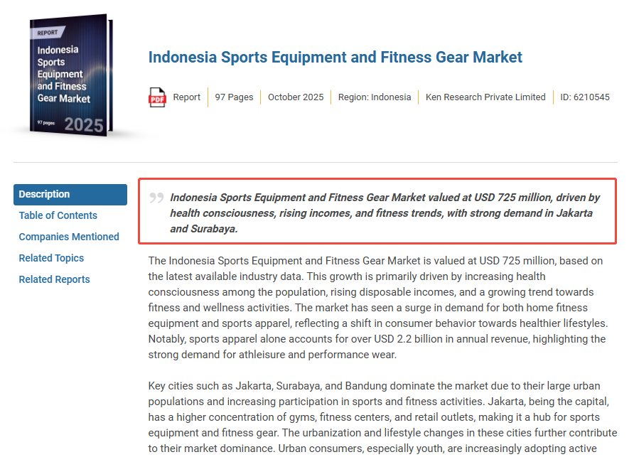 ▲印尼体育器材及健身装备市场估值为7.25亿美元